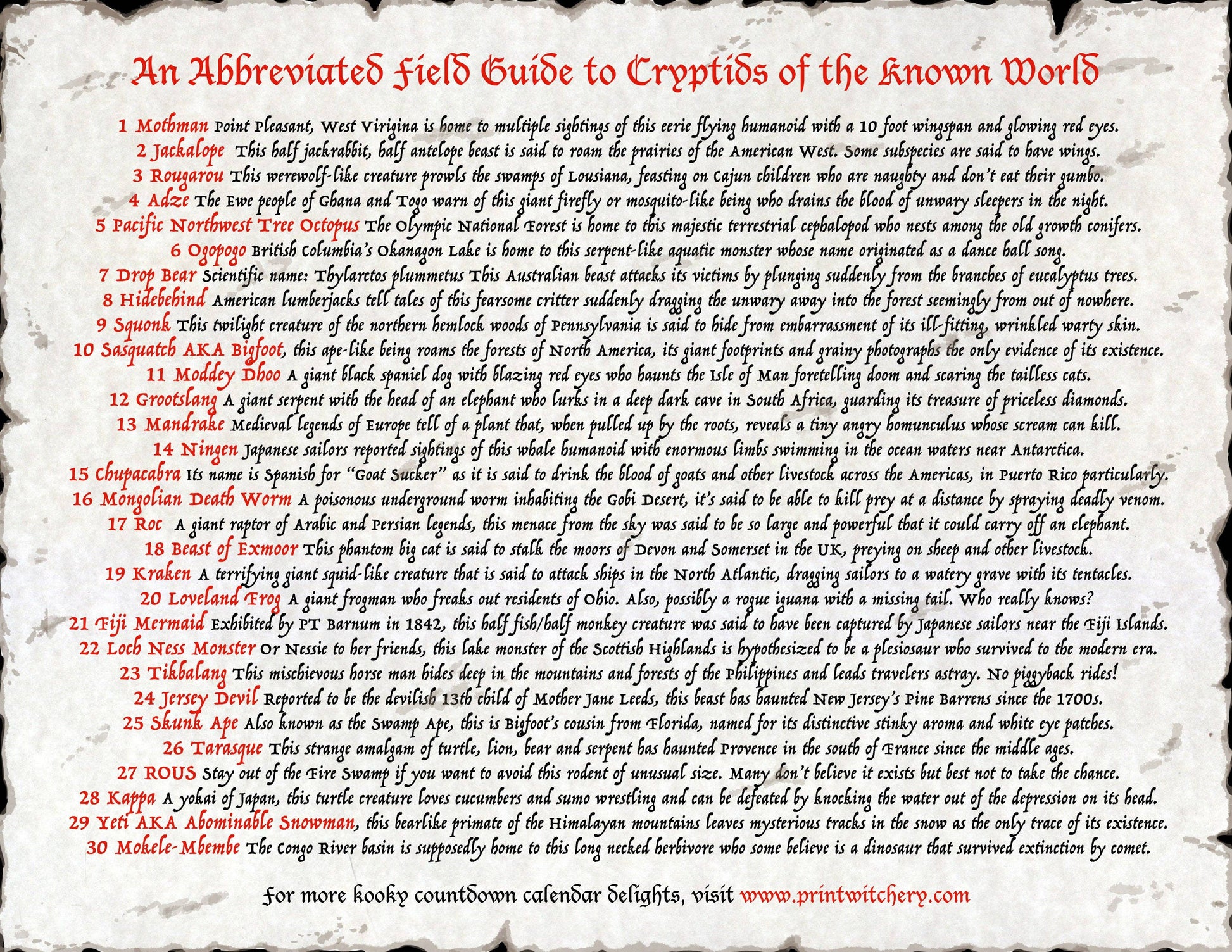 Cryptids and Creatures Countdown Calendar