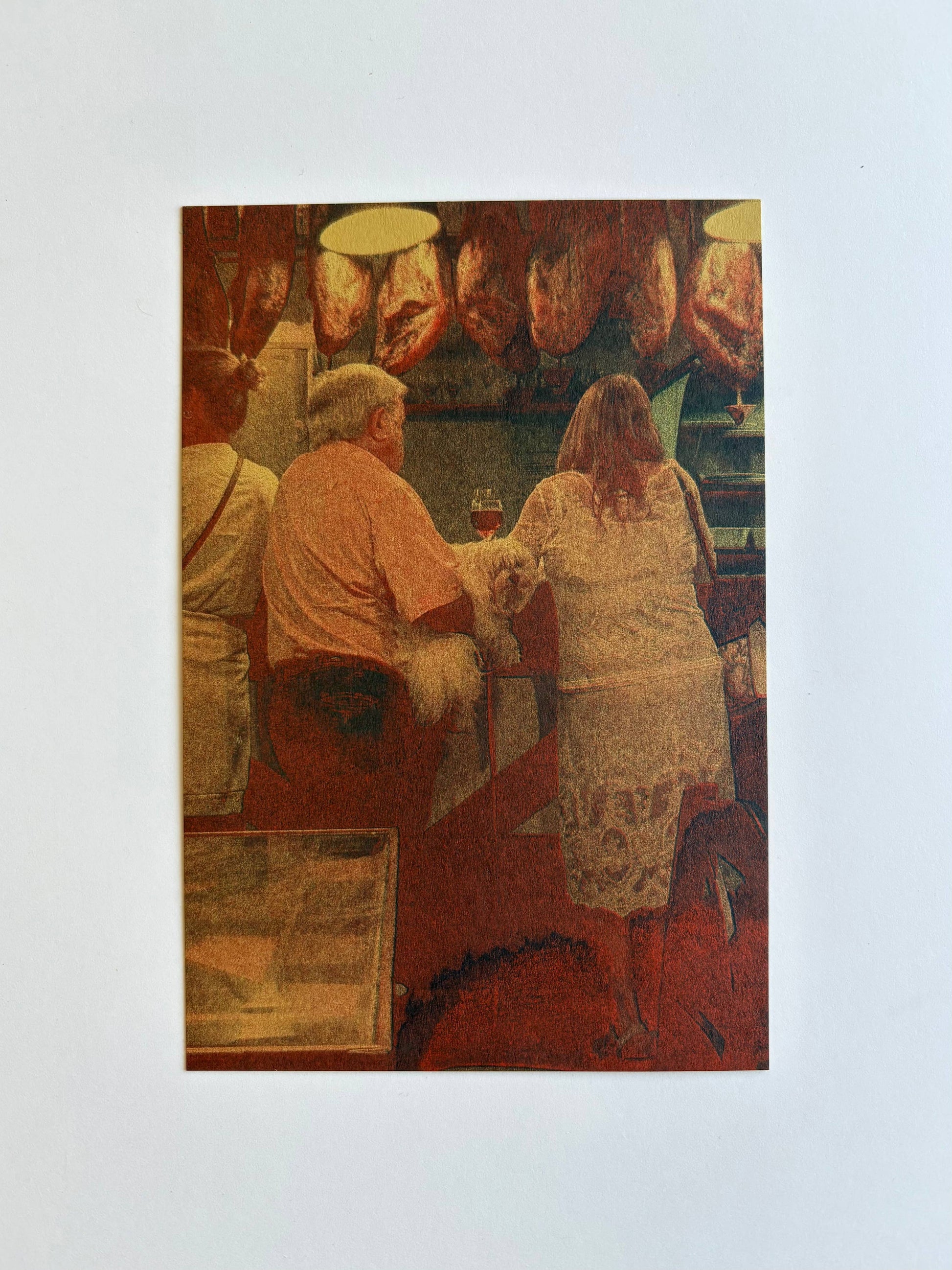 Donastia is a handmade set of four different photographs, printed in two Risograph colors on colored paper. The set features photos of food, produce, and locals taken during Summer in San Sebastian — Basque country!